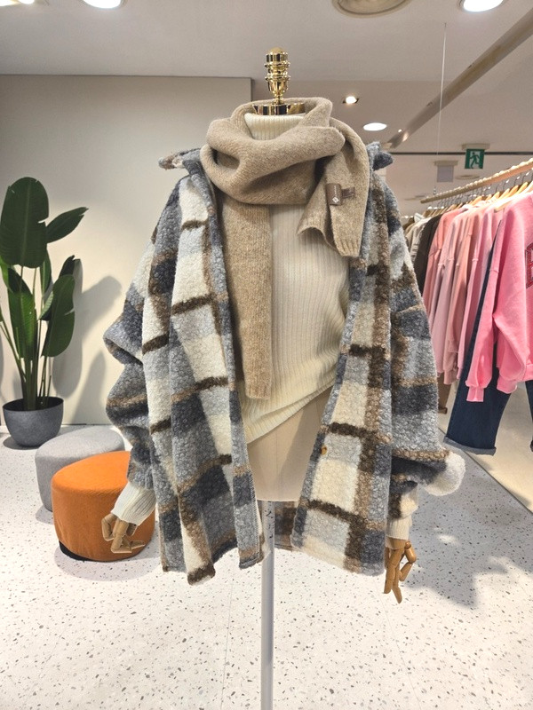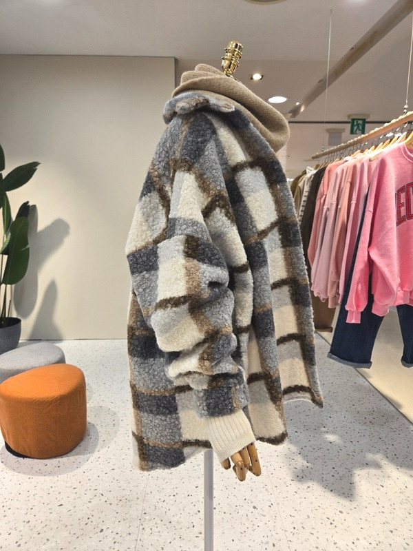 C25K7FNB003_루즈핏 소다체크 뽀글자켓