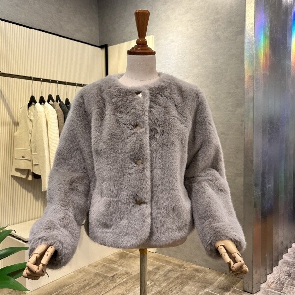 2024년 f/w 신상?라운드 페이크 퍼 단추 자켓 입니다.