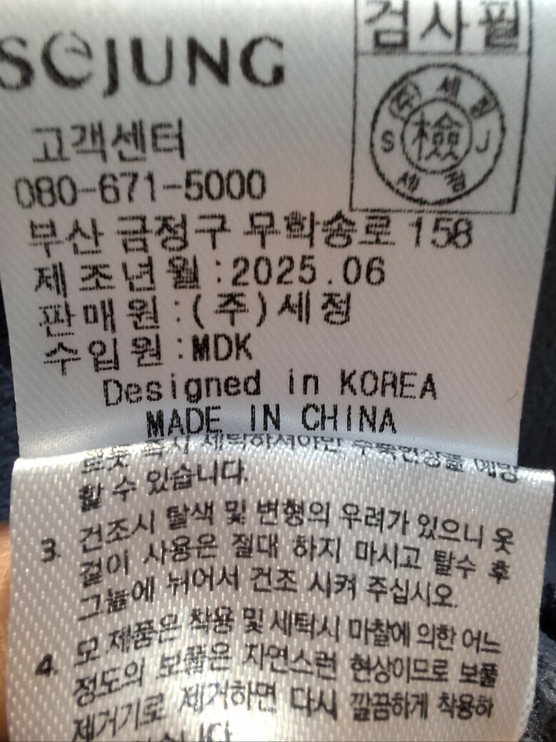 | 6. 세탁방법 및 취급시 주의사항 | 상품상세참조 |