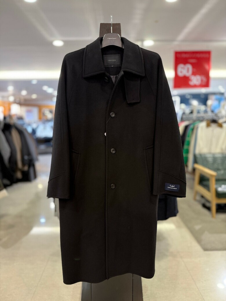 블랙 캐시미어블렌드 오버핏 발마칸 코트