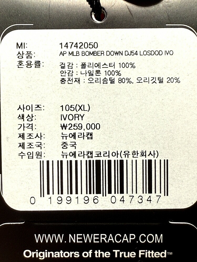 [25FW]뉴에라 MLB LA 다저스 봄버 다운 재킷 아이보리 14742050