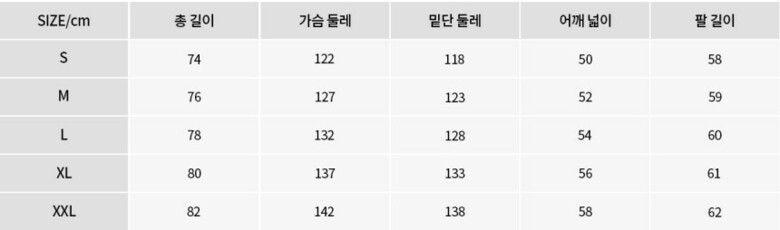 자세한 사이즈는 상세페이지 하단의 사이즈표를 참조해주세요