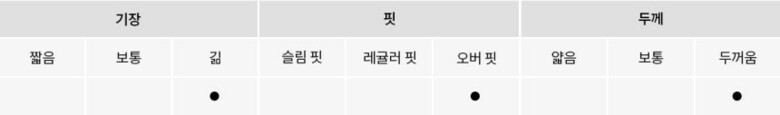 · 핏감 : □ 루즈 ■ 표준 □ 슬림