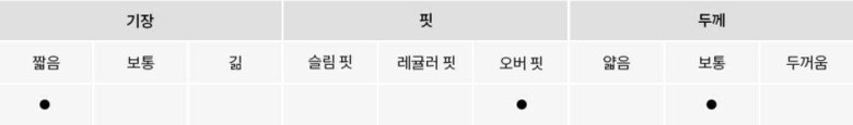 · 핏감 : □ 루즈 ■ 표준 □ 슬림
