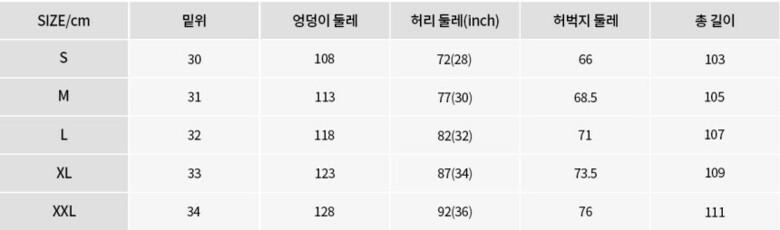 사이즈 : S(90),M(95),L(100),XL(105),XXL(110)