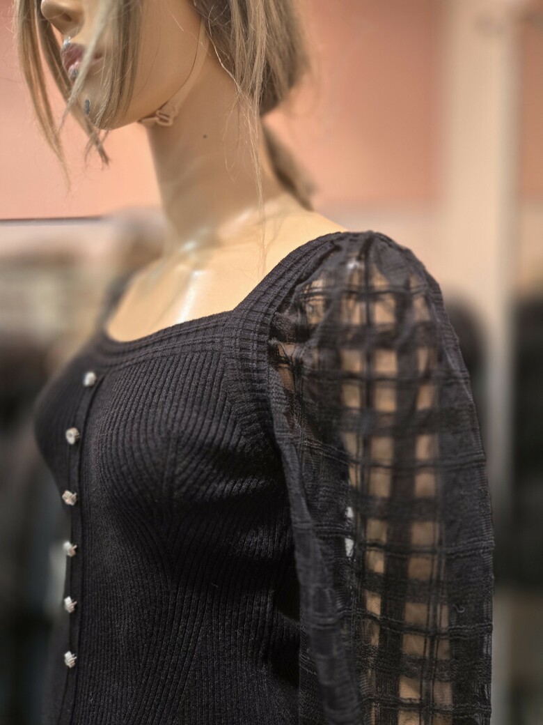 볼륨소매 골지 슬림 니트 EQ4KL-168