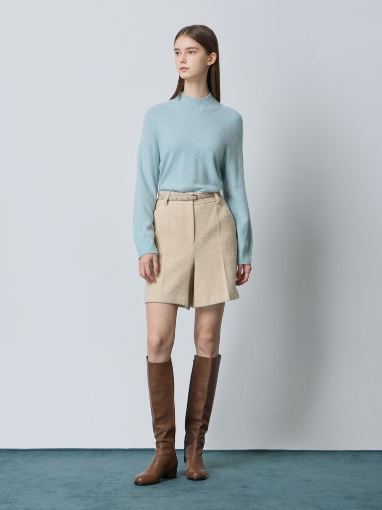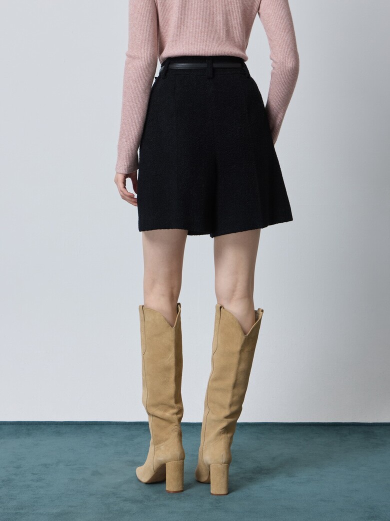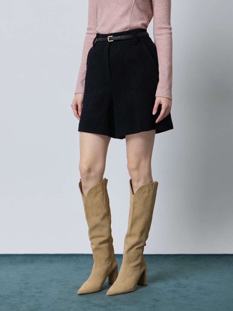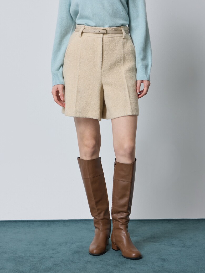 - 울 블렌드 부클 소재로 따뜻해보이는 외관을 가진 쇼츠입니다.