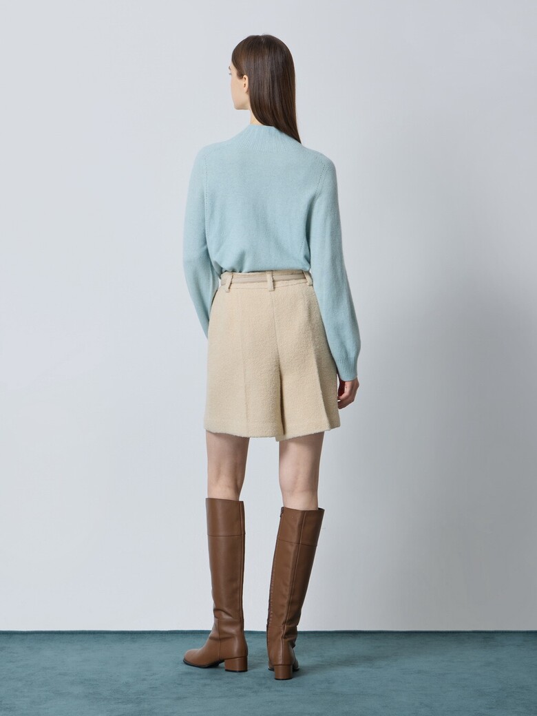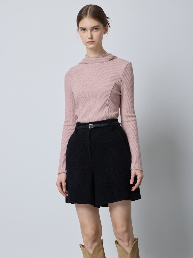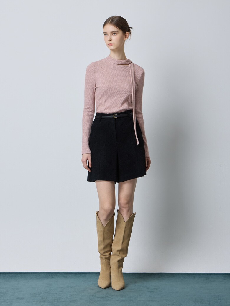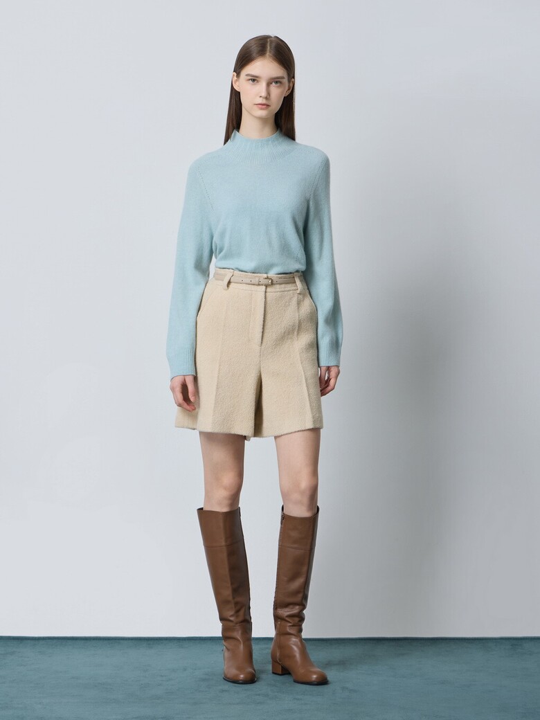 - 울 블렌드 부클 소재로 따뜻해보이는 외관을 가진 쇼츠입니다.