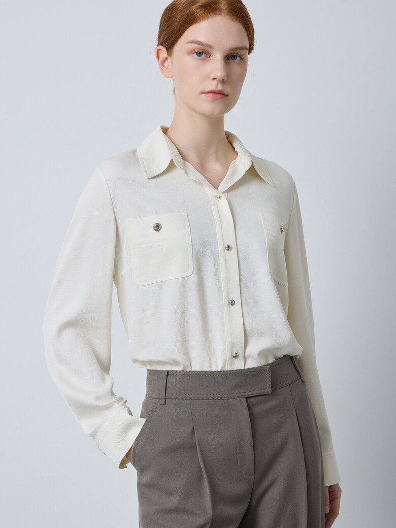 - 도톰하면서도 부드러운 레이온 소재의 오픈카라 셔츠입니다.