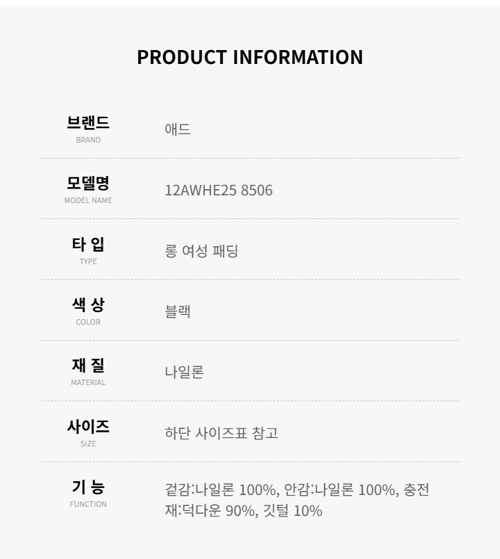 애드 패딩 12AWHE25 8506 롱 여성패딩 당일발송