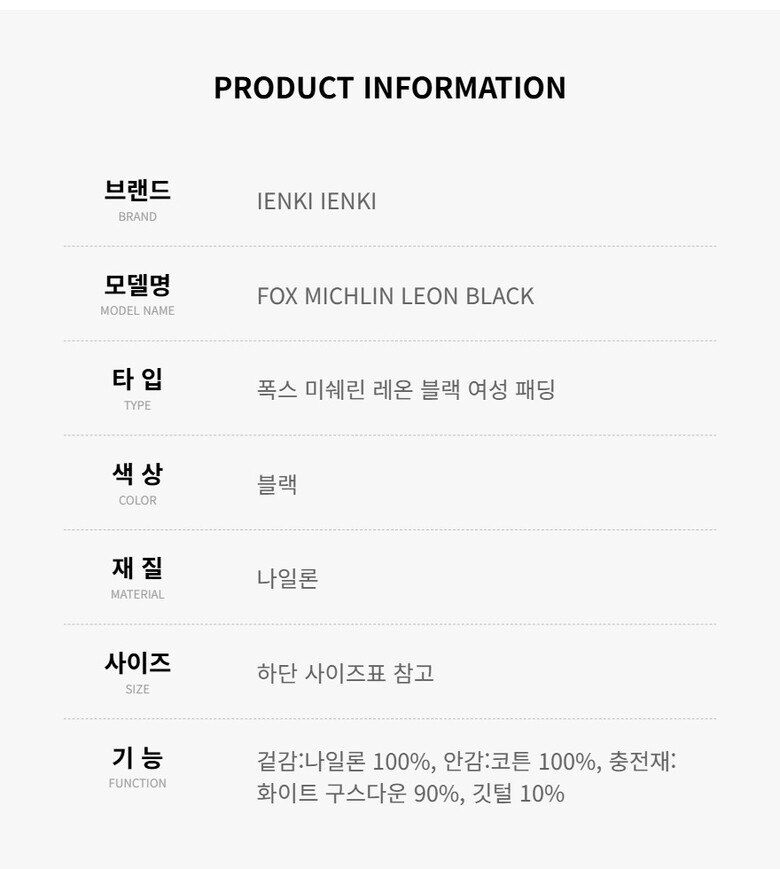 옌키옌키 패딩 FOX MICHLIN LEON BLACK 폭스 미쉐린 레온 여성패딩 당일발송