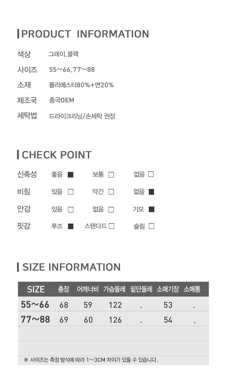 • 처음 배송된 상품상태와 다를 경우(세탁/착용 후 외출하신 경우) 반품이 불가합니다.