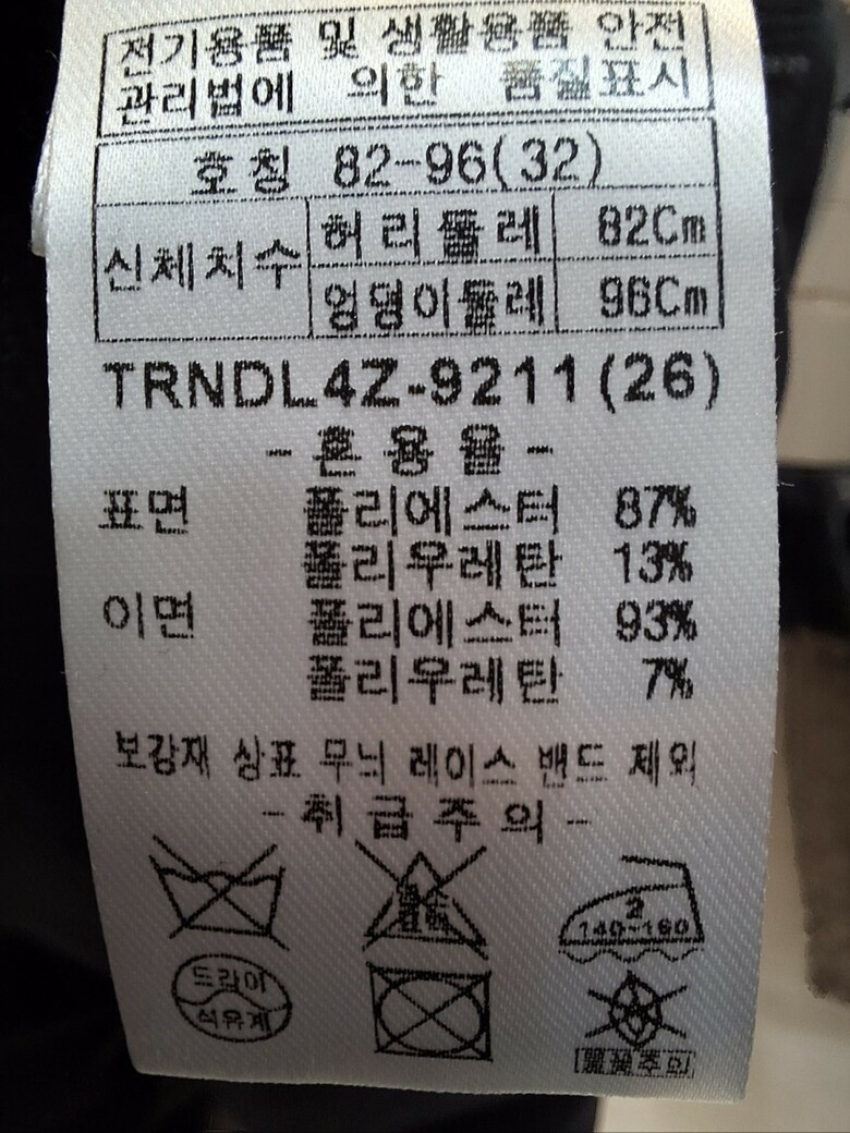 | 1. 제품 소재 (섬유의 조성 또는 혼용률을 백분율로 표시, 기능성인 경우 성적서 또는 허가서) | 폴리에스테르 93%, 폴리우레탄 7% |