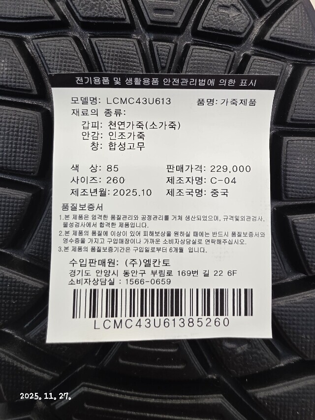 남성 소가죽 초경량 U팁 컴포트화LCMC43U613