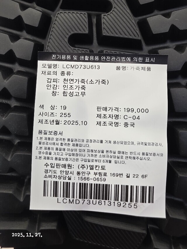 | 1. 제품 소재 (운동화인 경우에는 겉감, 안감을 구분하여 표시) | 상품상세참조 |