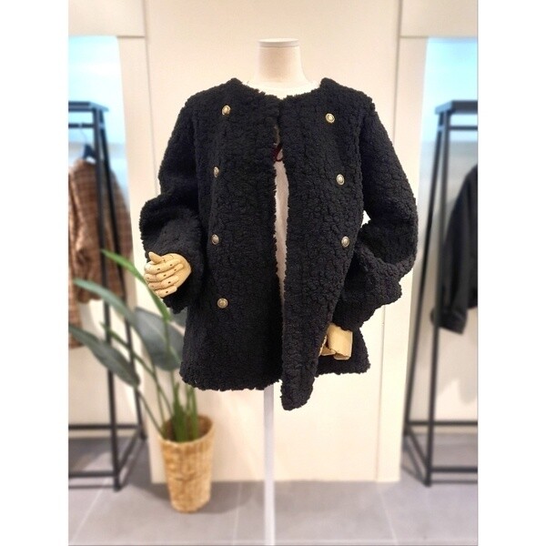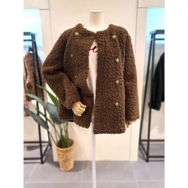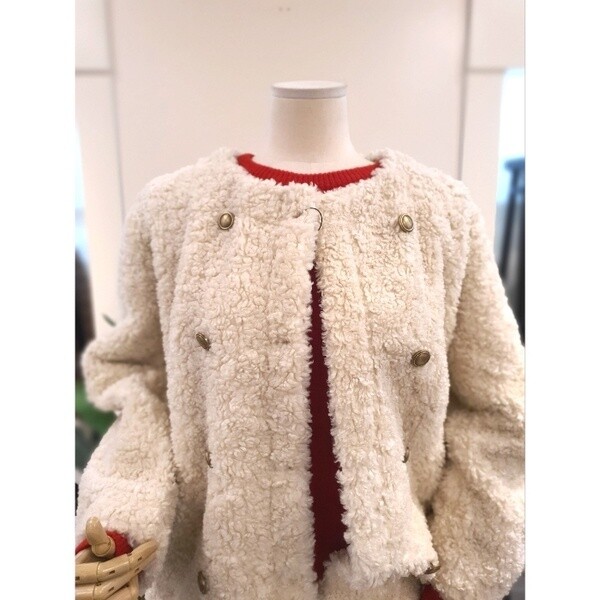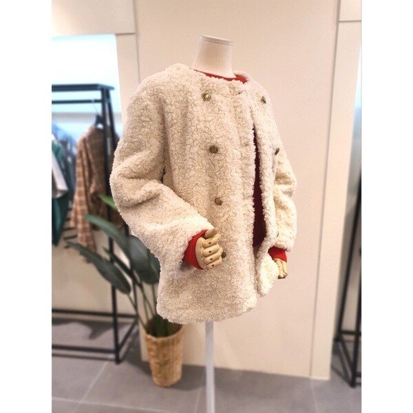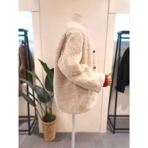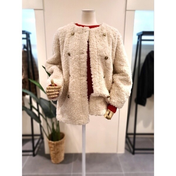 KEFUPC02BE_부클 라운드 무스탕 자켓 베이지