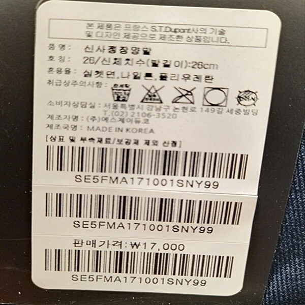 | 1. 종류 | 신사용 양말 |