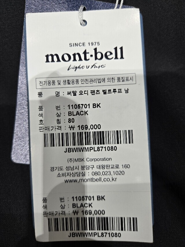 | 1. 제품 소재 (섬유의 조성 또는 혼용률을 백분율로 표시, 기능성인 경우 성적서 또는 허가서) | 나일론 50%폴리에스테르 43%폴리우레탄 7%[발수가공.뒷면 기모가공] |