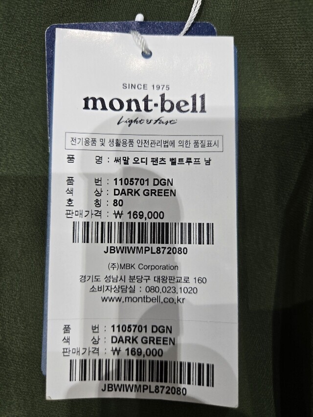 | 1. 제품 소재 (섬유의 조성 또는 혼용률을 백분율로 표시, 기능성인 경우 성적서 또는 허가서) | 나일론 50%폴리에스테르 43%폴리우레탄 7%[발수가공.뒷면 기모가공] |