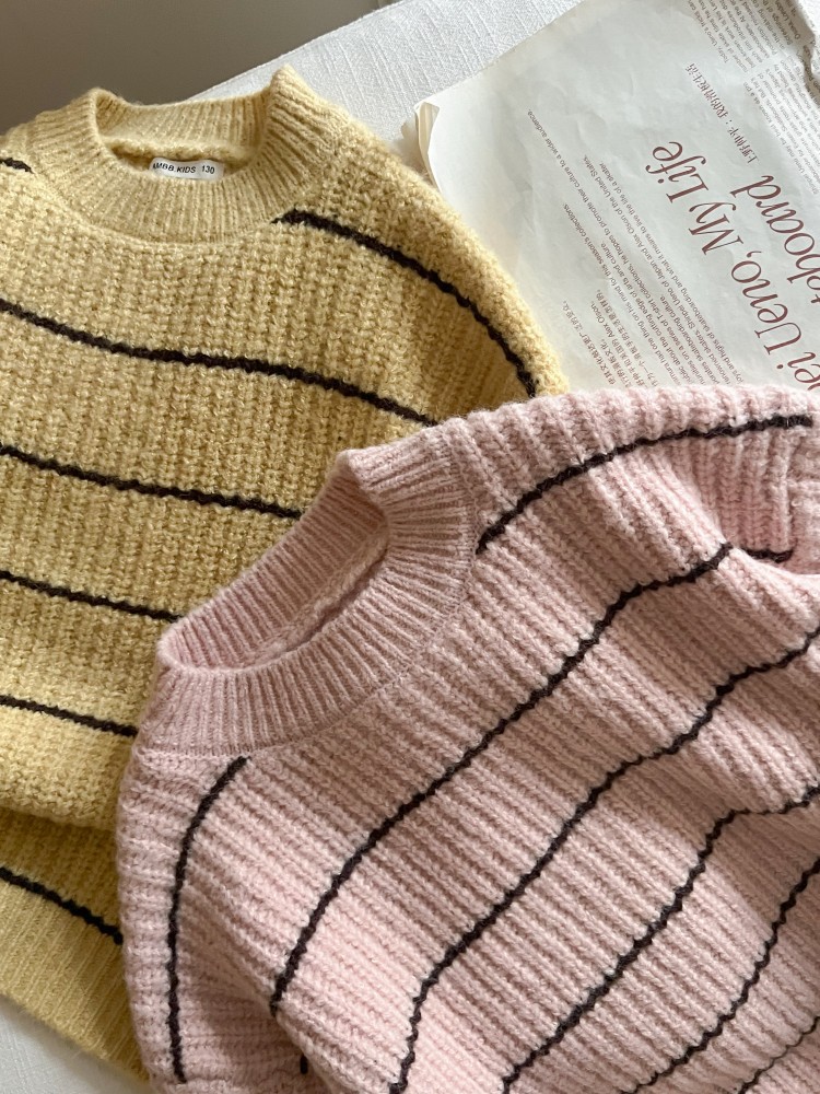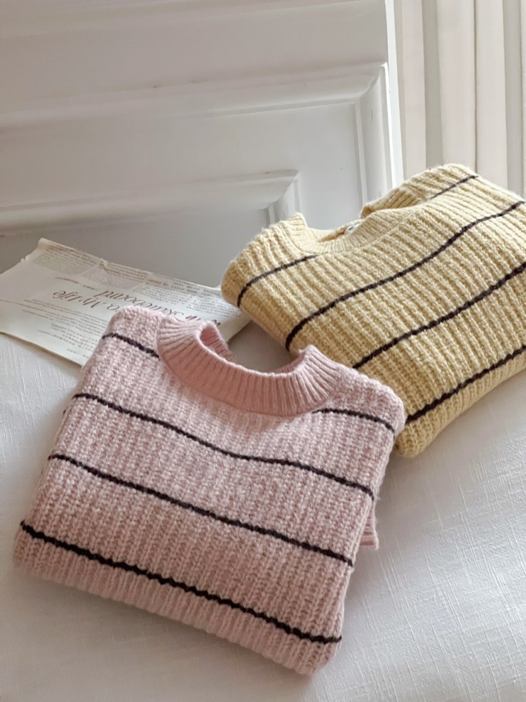 [예약발송] 리엘라 스트라이프 니트 티셔츠 R15939