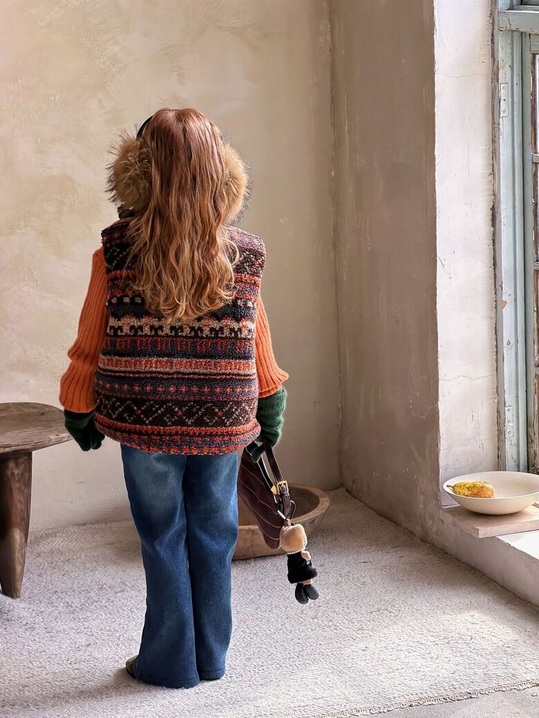 [예약발송] 노르딕 패턴 뽀글이 조끼 R15999