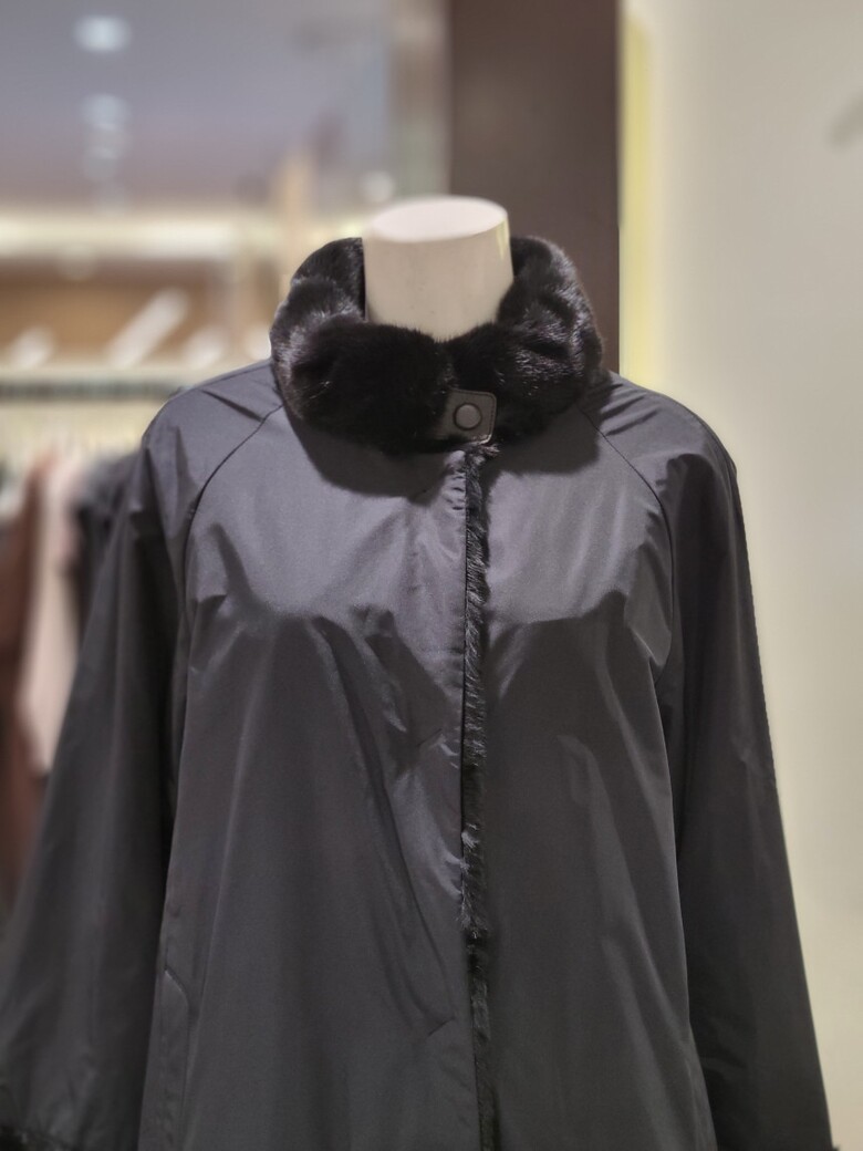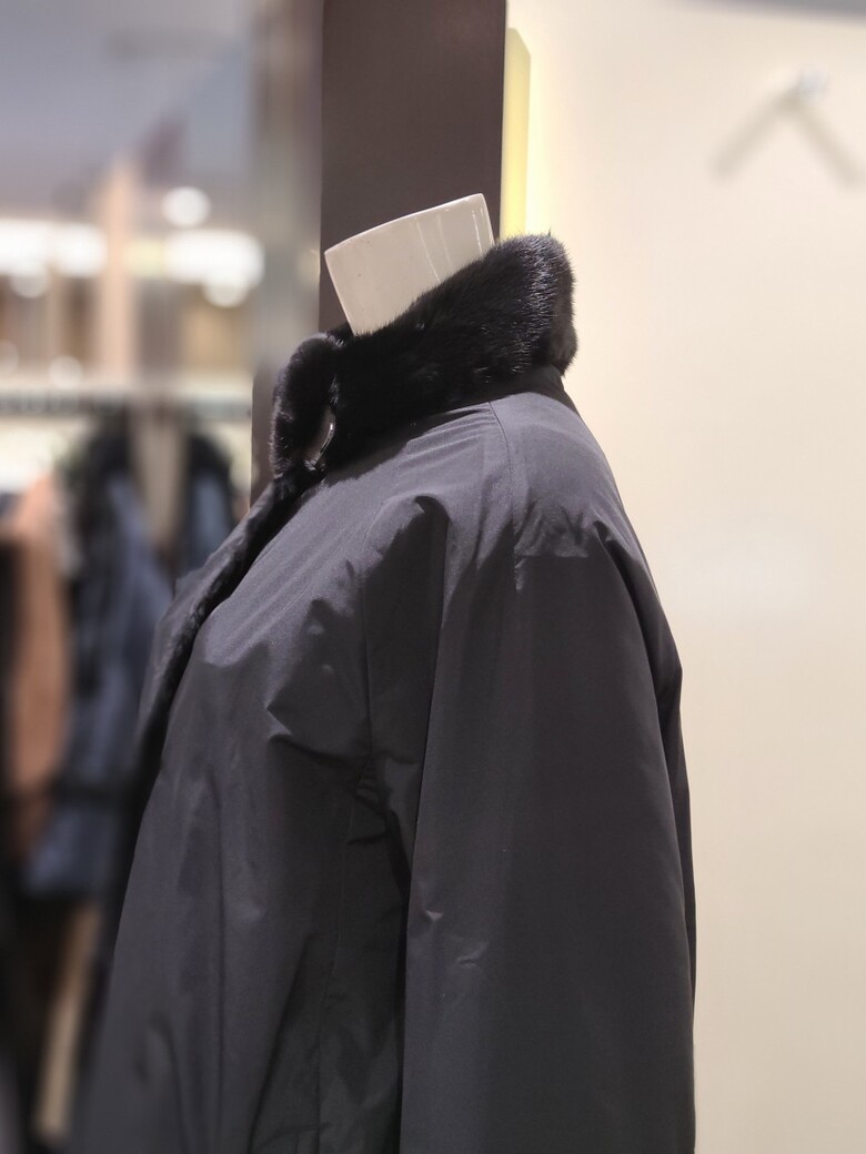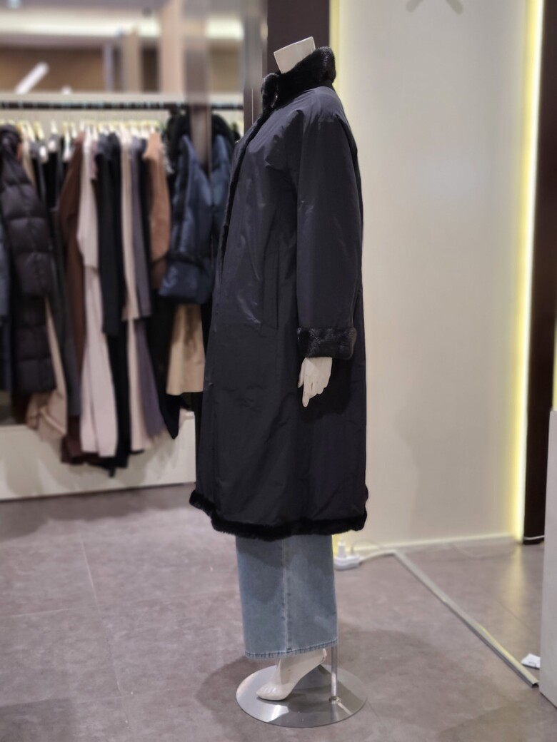 차이나넥 디자인이 목을 감싸주어 포근하고 우아한 느낌을 줍니다.