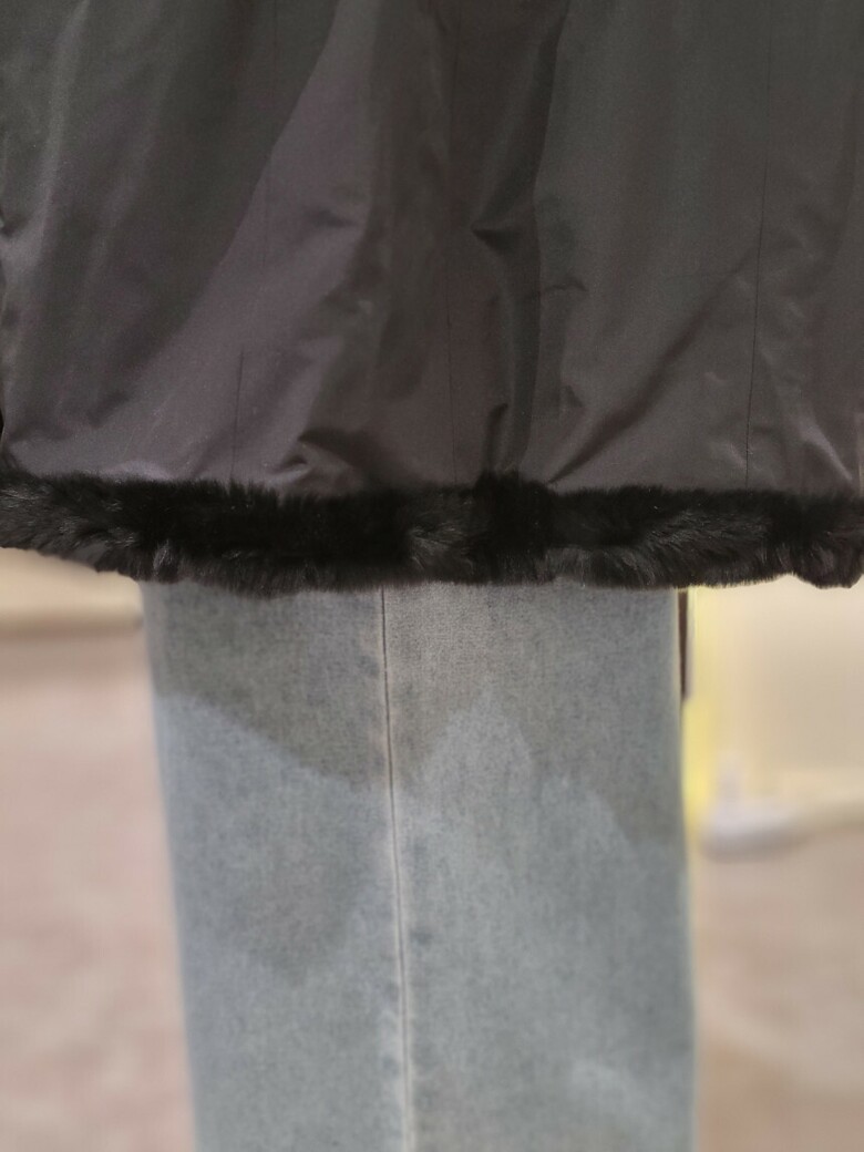 | 1. 제품 소재 (섬유의 조성 또는 혼용률을 백분율로 표시, 기능성인 경우 성적서 또는 허가서) | 겉감: 폴리에스테르 100% / 안감:토끼털 100% / 배색1:밍크 100%, 배 |