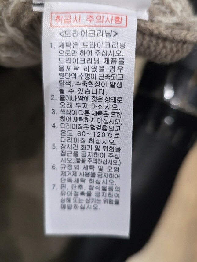 6. 세탁방법 및 취급시 주의사항 드라이크리닝