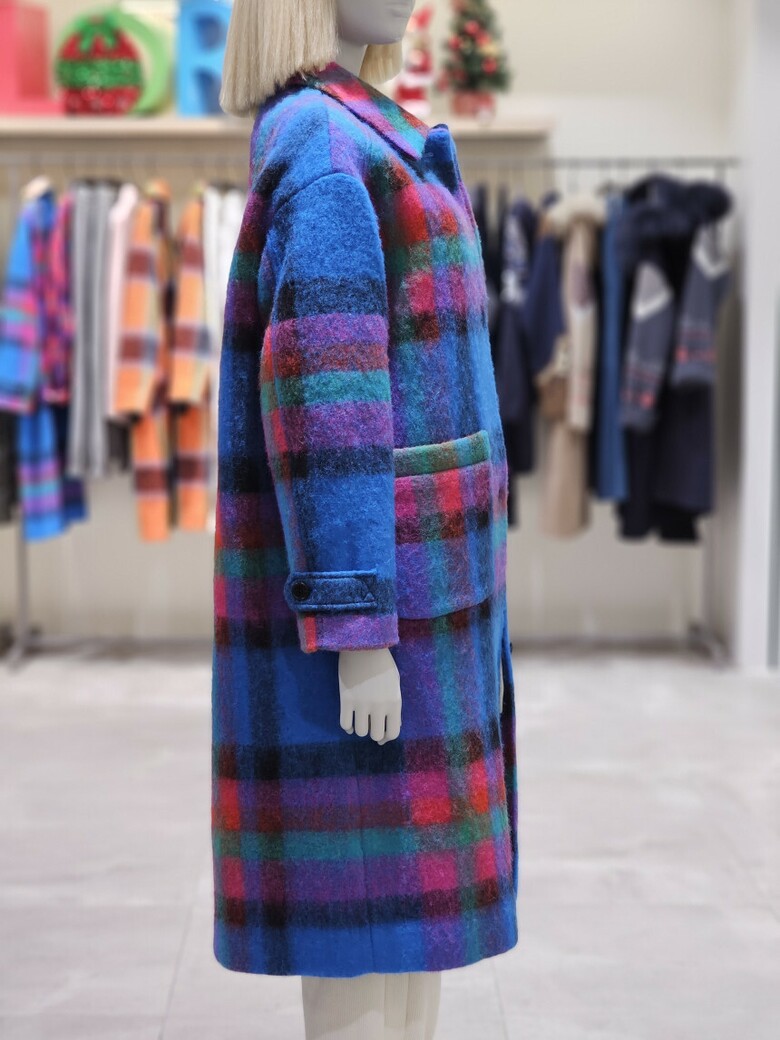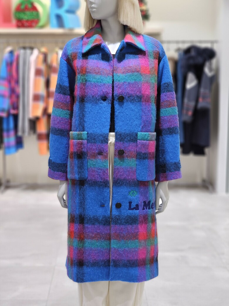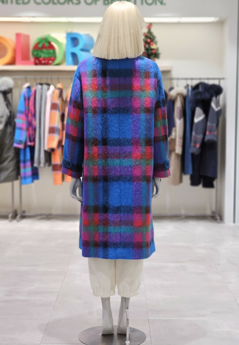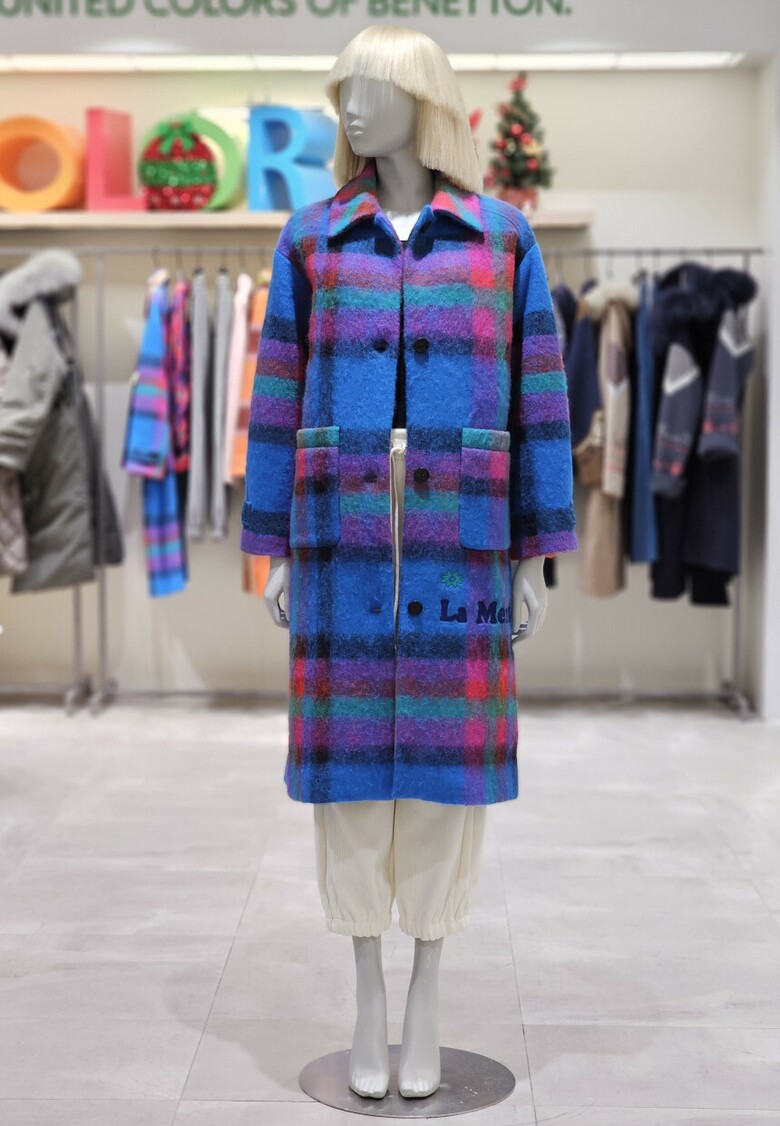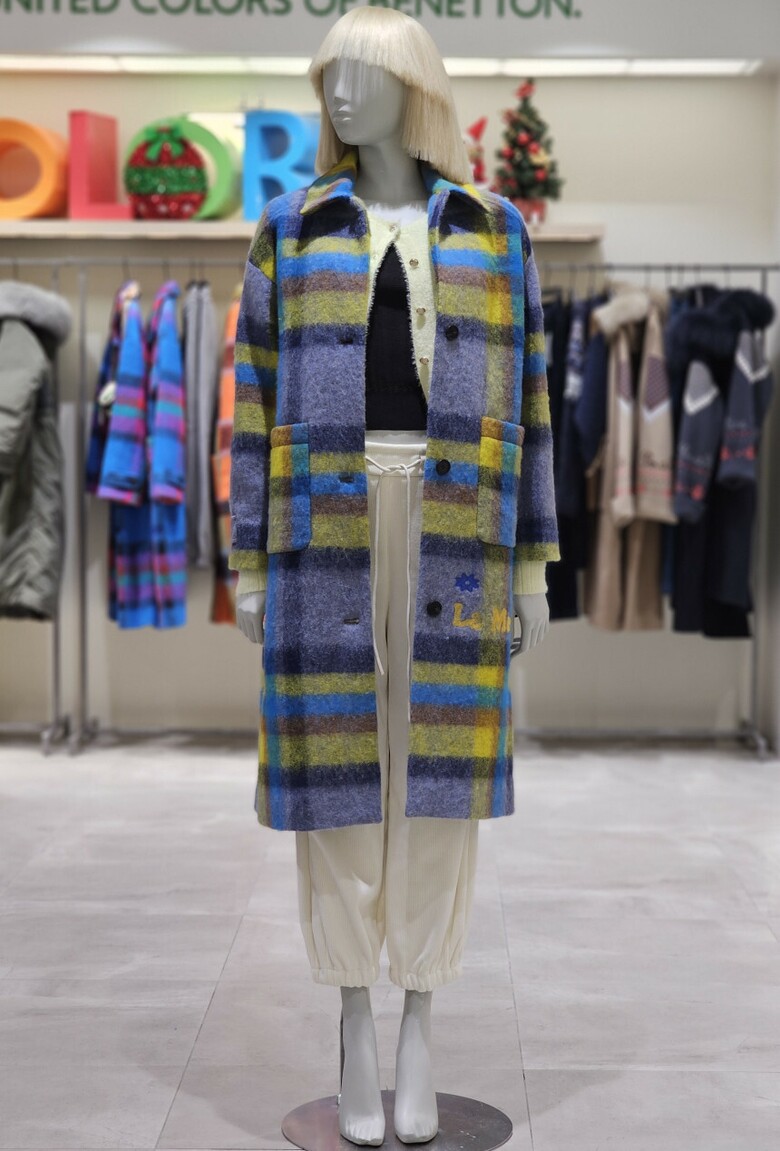 체크 패턴 롱 코트