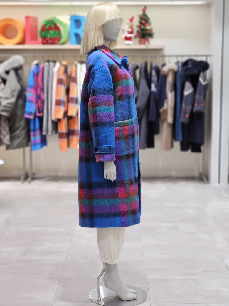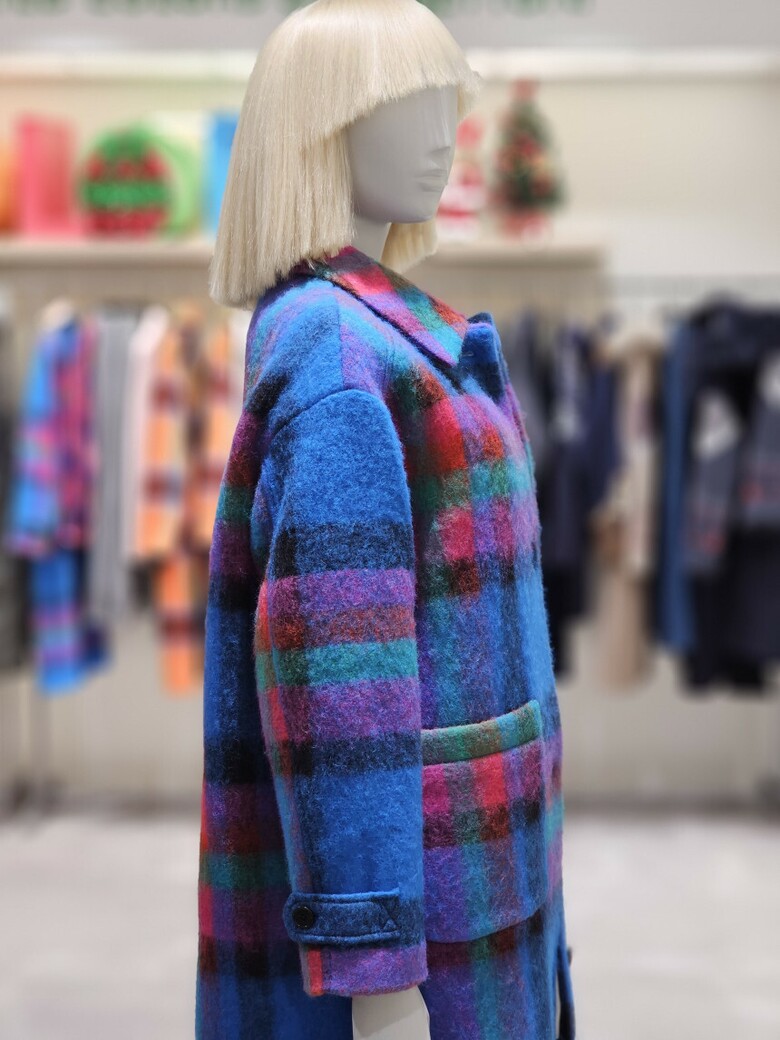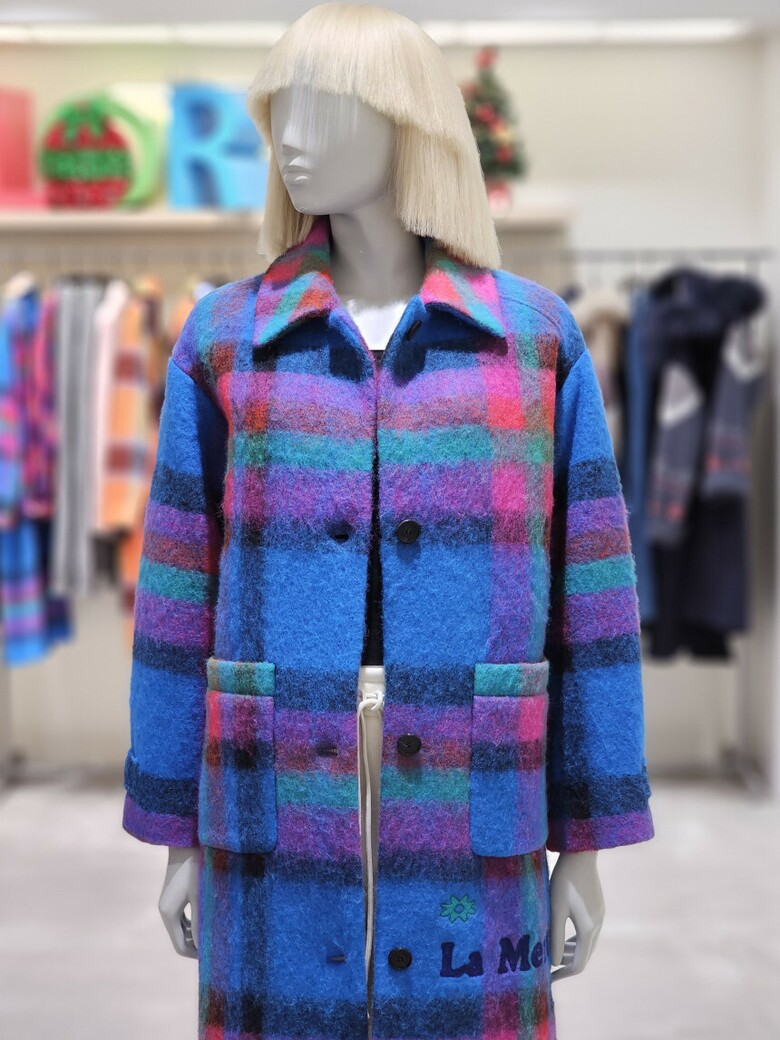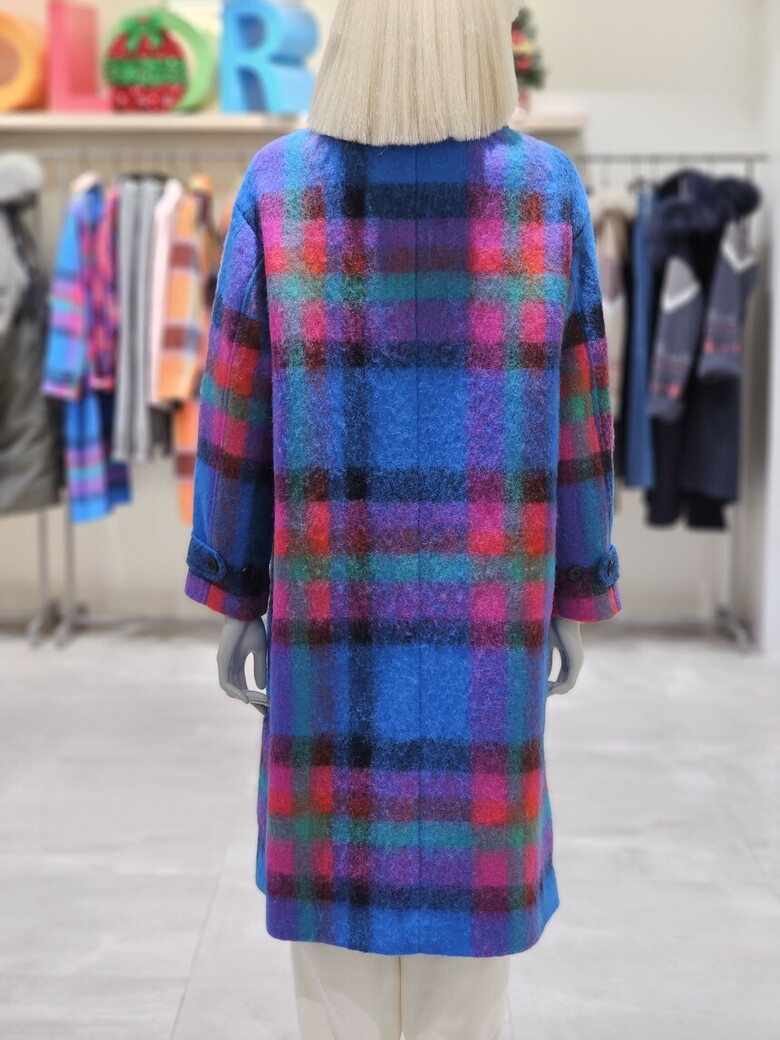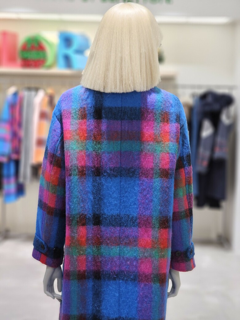 체크 패턴 롱 코트