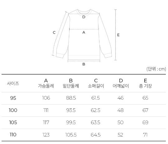 사이즈 단위는 cm이며,재는 위치에 따라 1~3cm사이즈 오차가