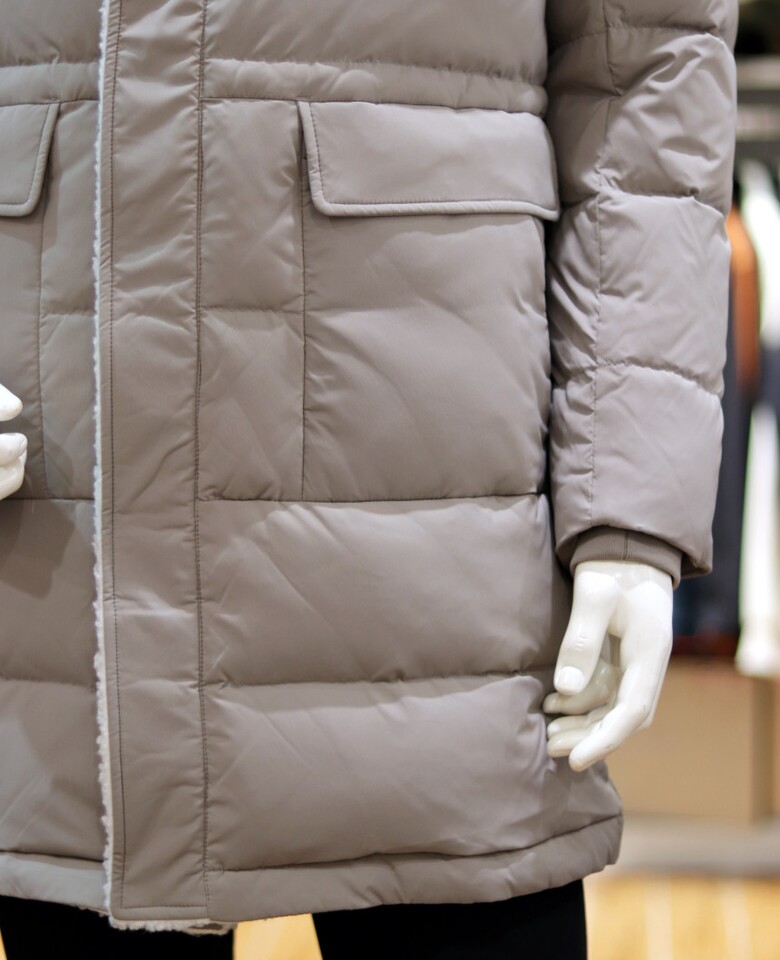 캐쥬얼한 외관의 롱기장 덕다운 점퍼입니다