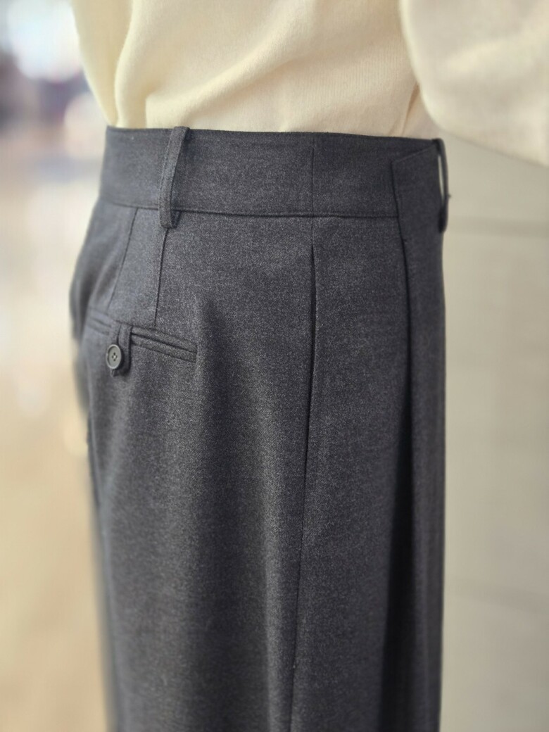 사이드쪽 핀턱을 포인트로 와이드핏 정장팬츠입니다.