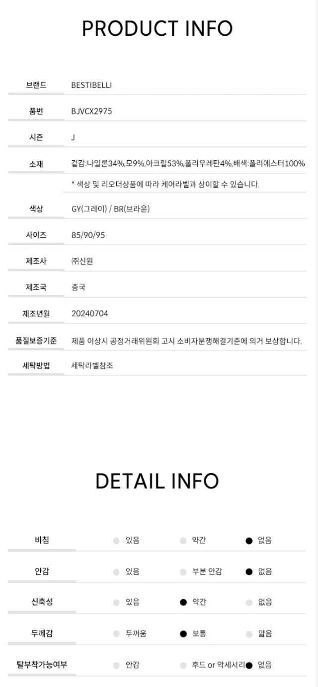 | 6. 세탁방법 및 취급시 주의사항 | 상품상세참조 |