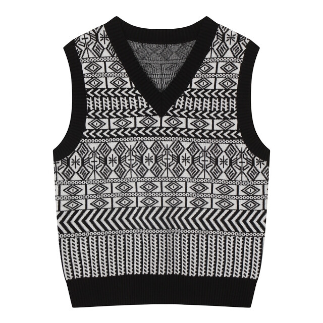 베스띠벨리 패턴 브이넥 니트 베스트BJVCX29670