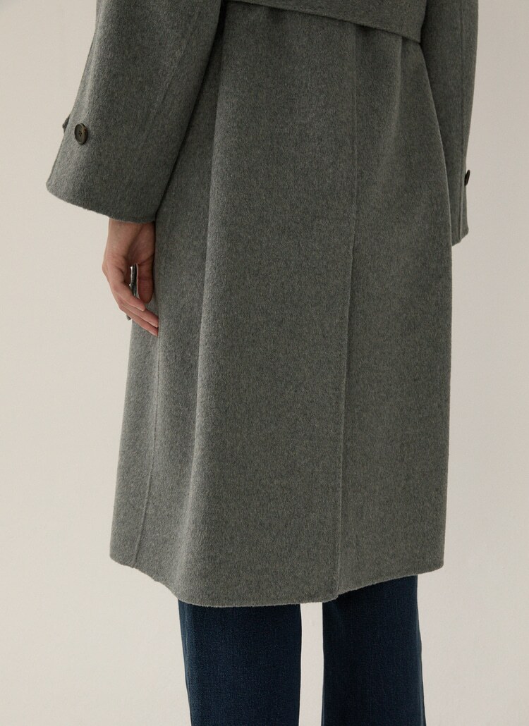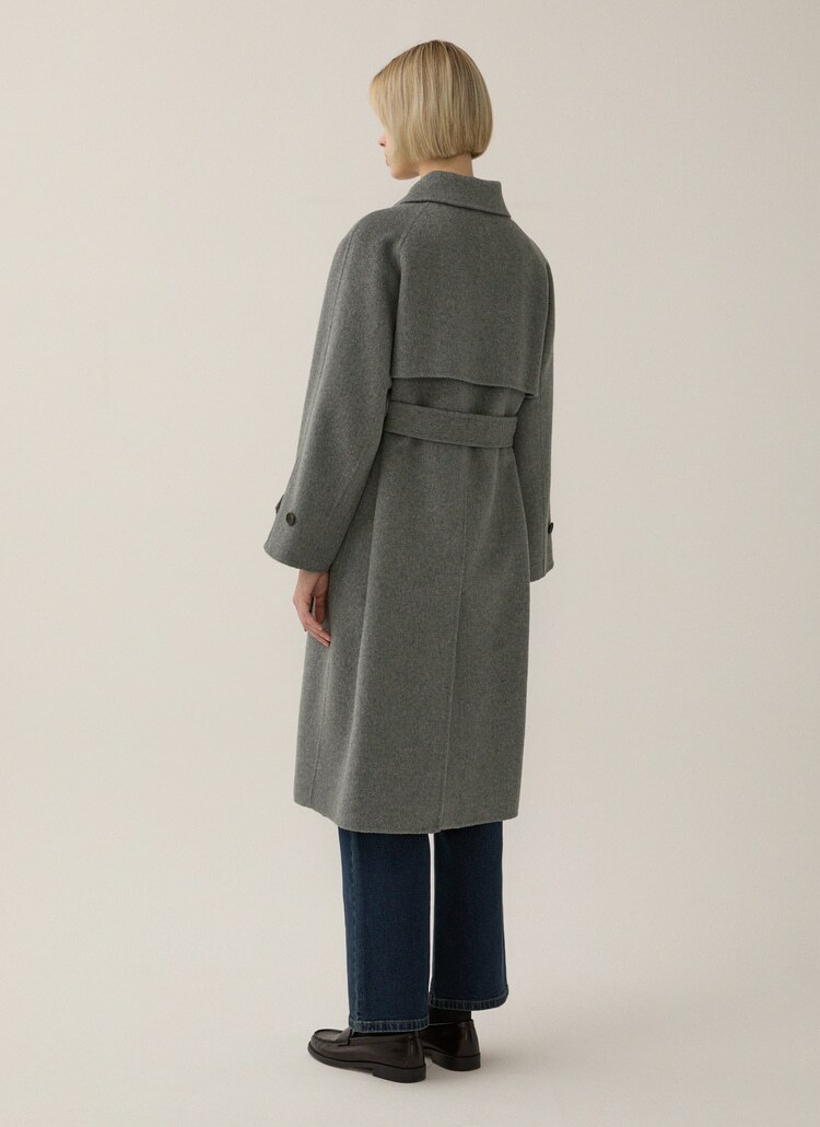 견고한 울 혼방 원단에 트렌치 스타일이 어우러진 핸드메이드 코트입니다.