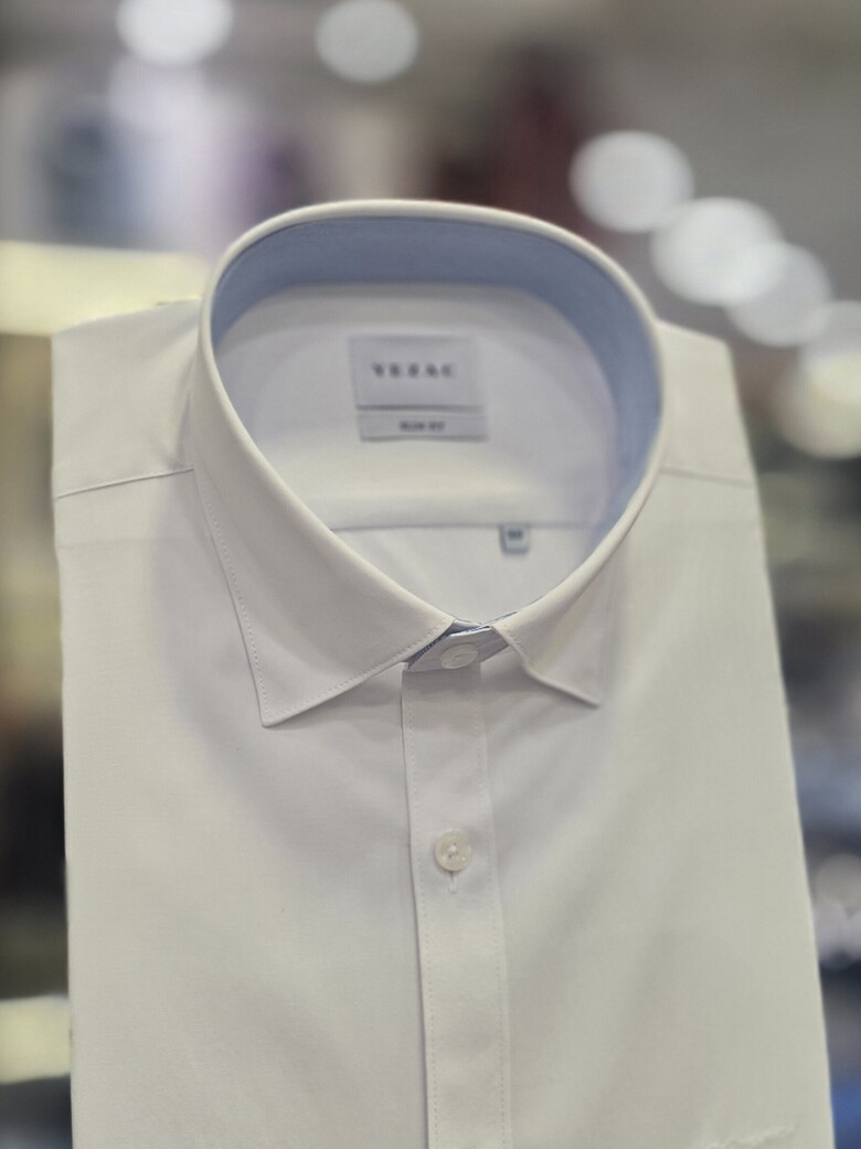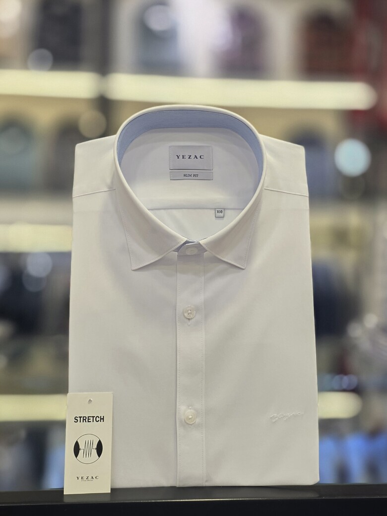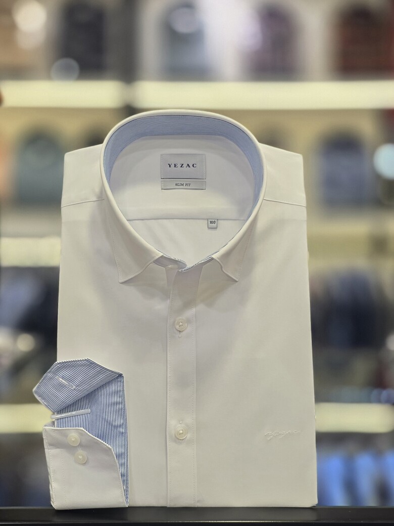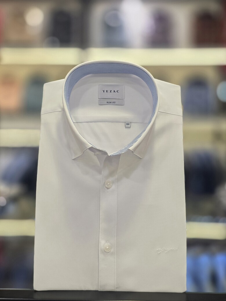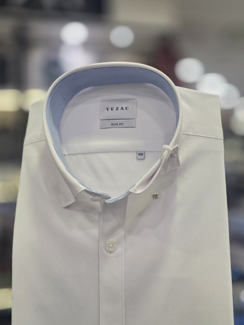 [예작셔츠] 화이트 모달 스판 카라스냅버튼 슬림핏셔츠 YJFSBS161WH