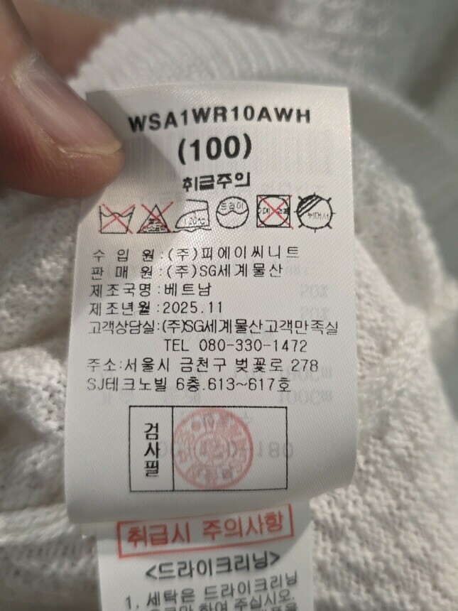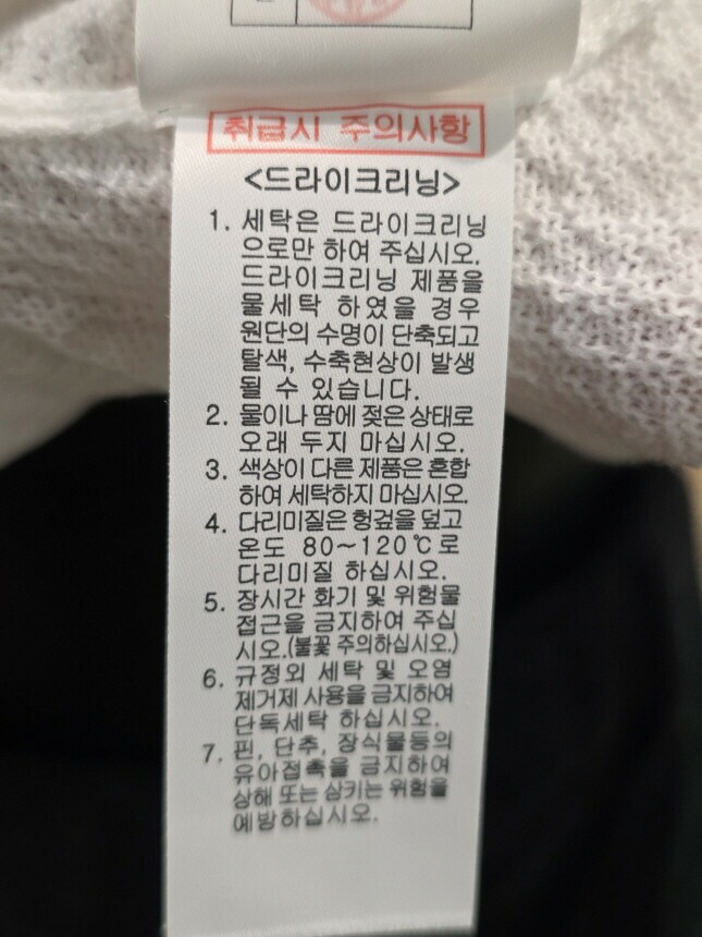 | 6. 세탁방법 및 취급시 주의사항 | 드라이크리닝 |