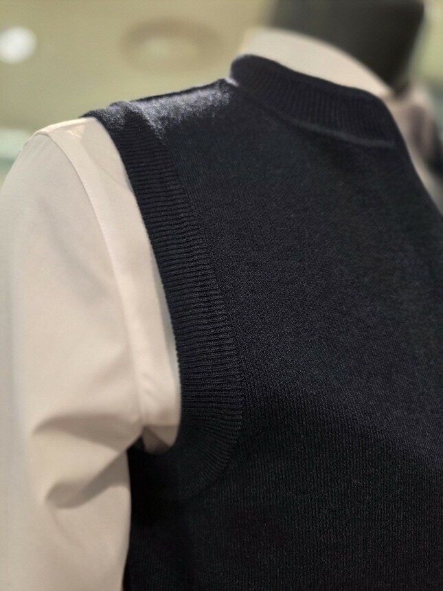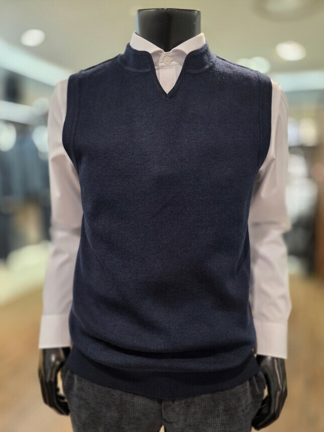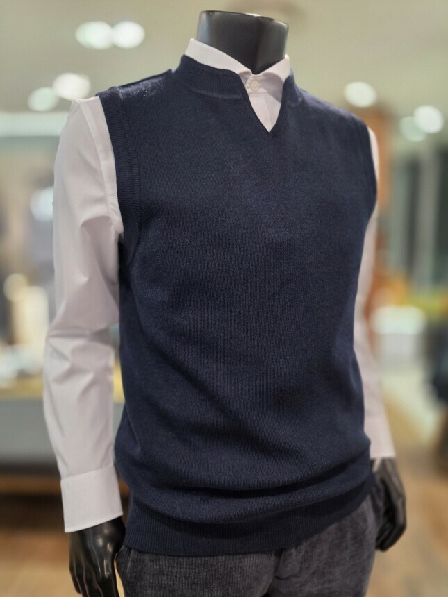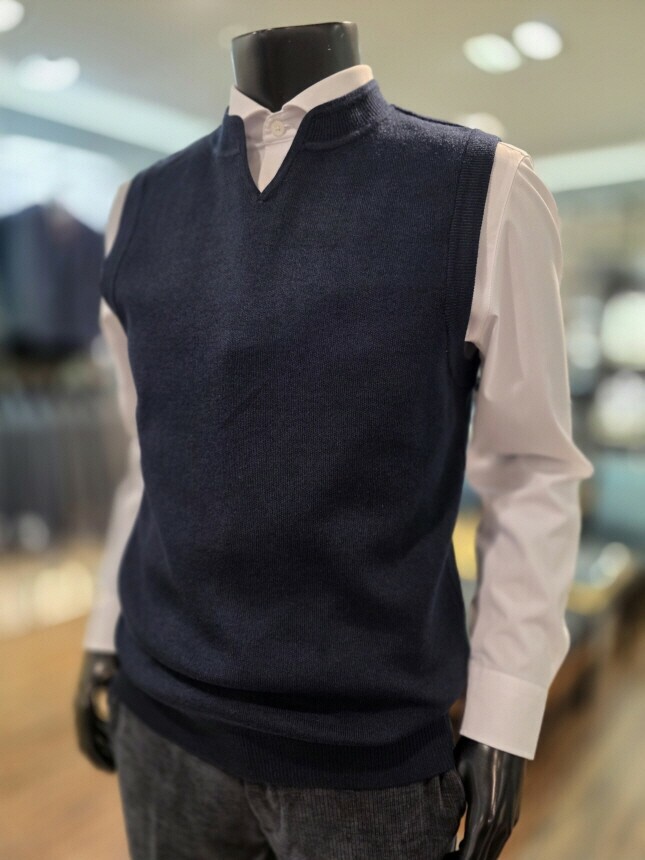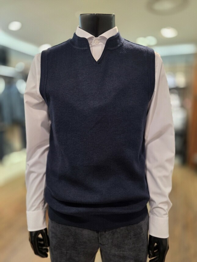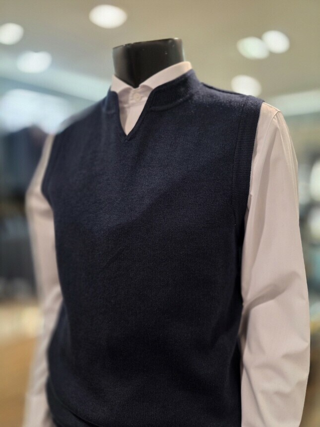 [바쏘옴므] 25년F/W 네이비 V넥 니트 베스트