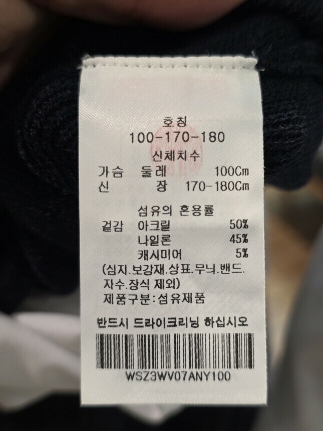 겉감 : 아크릴 50% , 나일론 45% , 캐시미어 5%