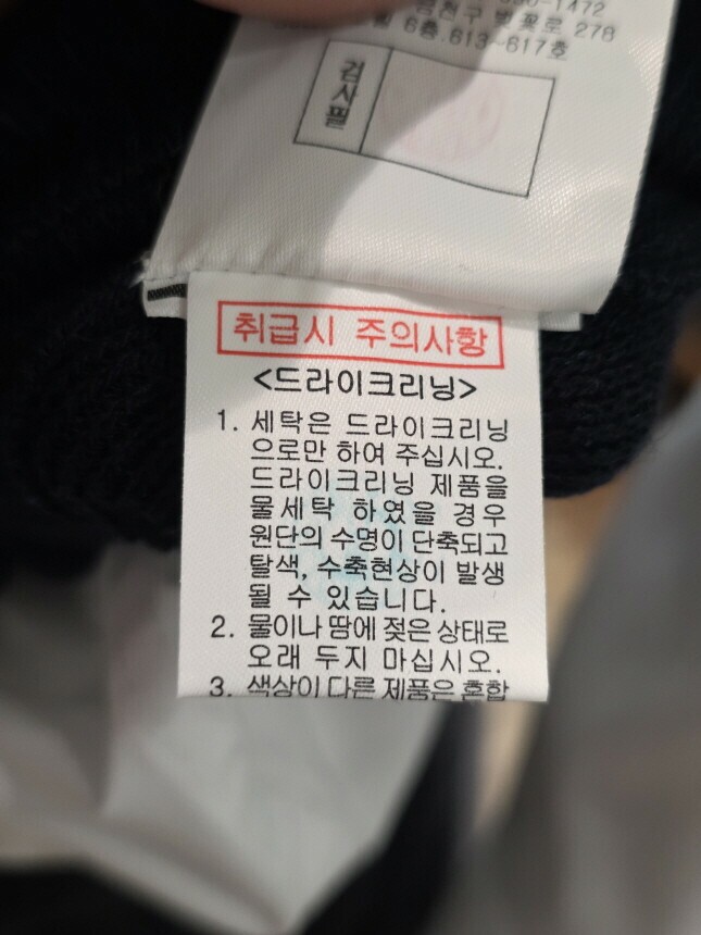 | 6. 세탁방법 및 취급시 주의사항 | 드라이크리닝 |