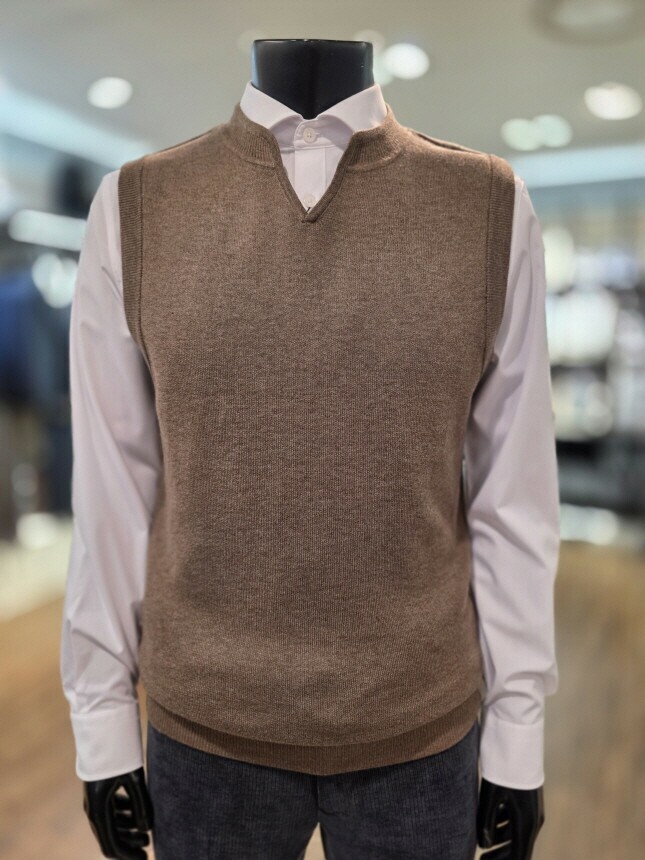 [바쏘옴므]25년F/W 모카 V넥 니트 베스트