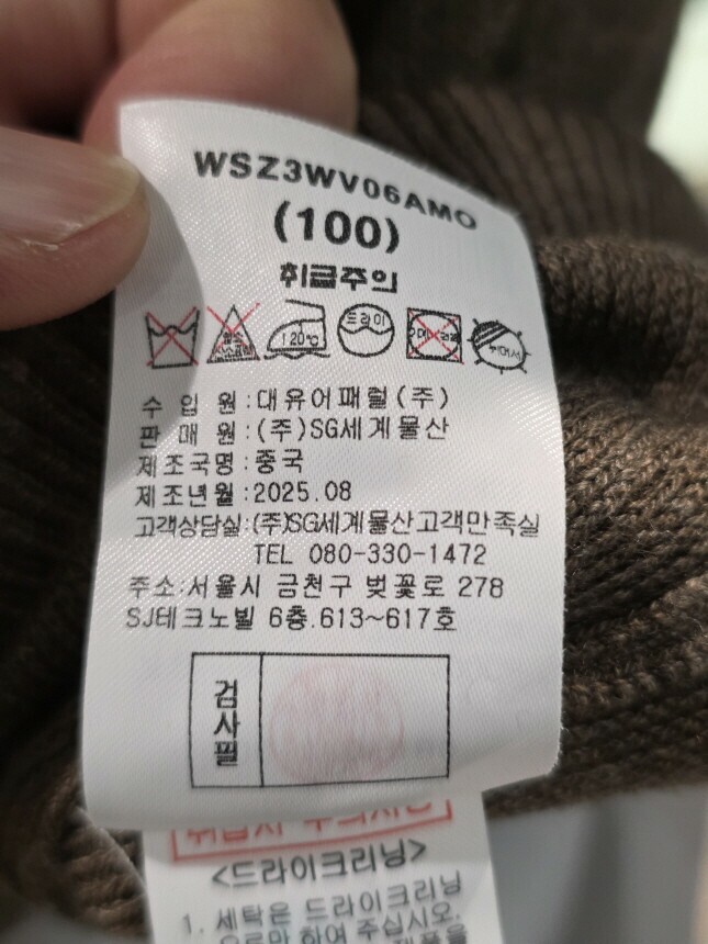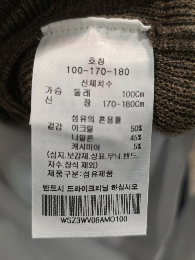 겉감 : 아크릴 50% , 나일론 45% , 캐시미어 5%