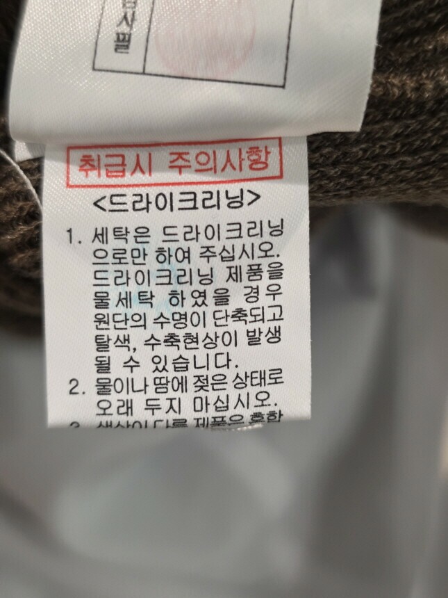 | 6. 세탁방법 및 취급시 주의사항 | 드라이크리닝 |