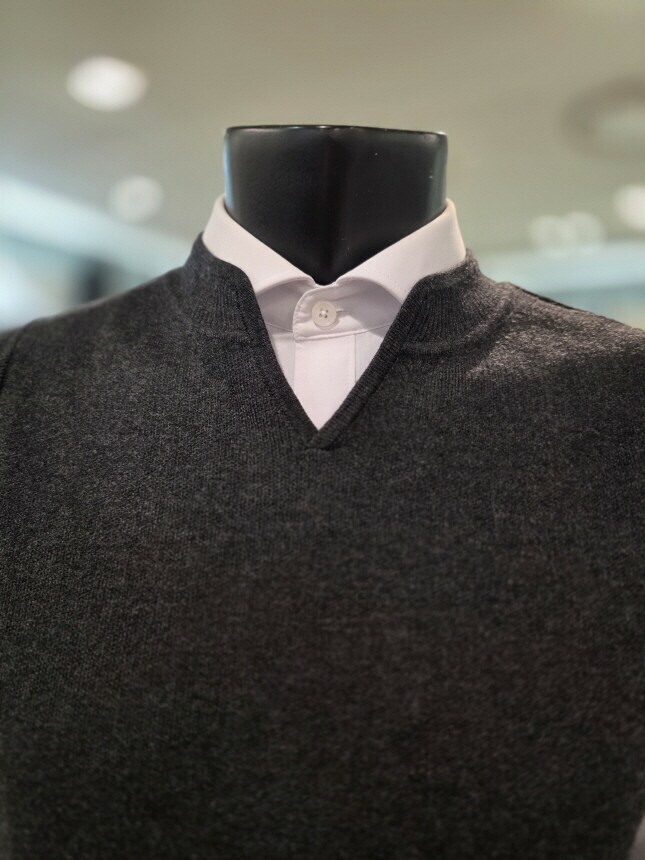 [바쏘옴므]25년F/W 챠콜 V넥 니트 베스트