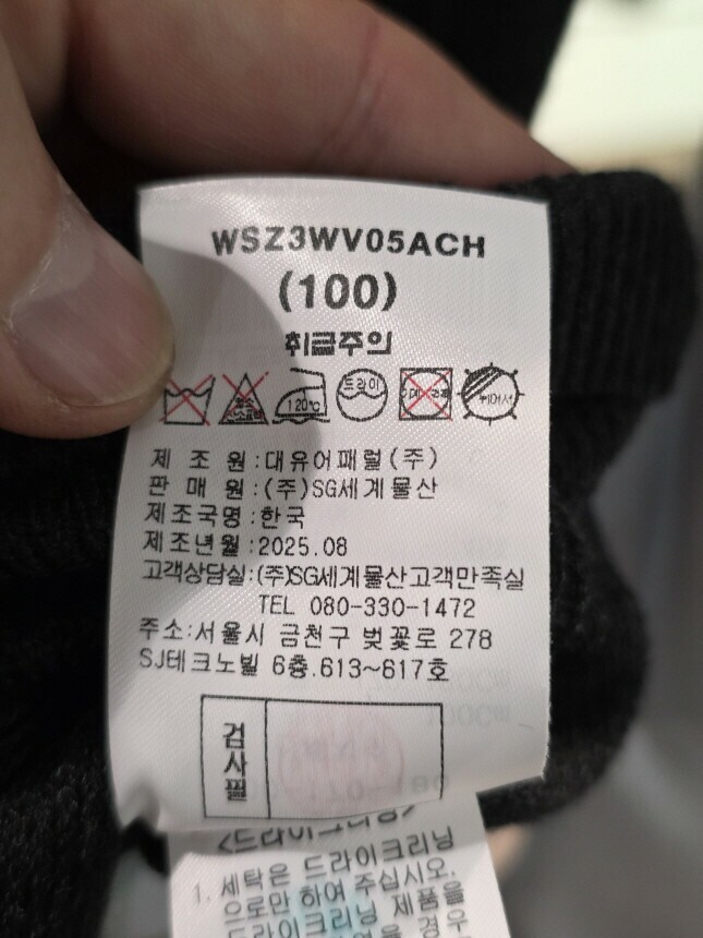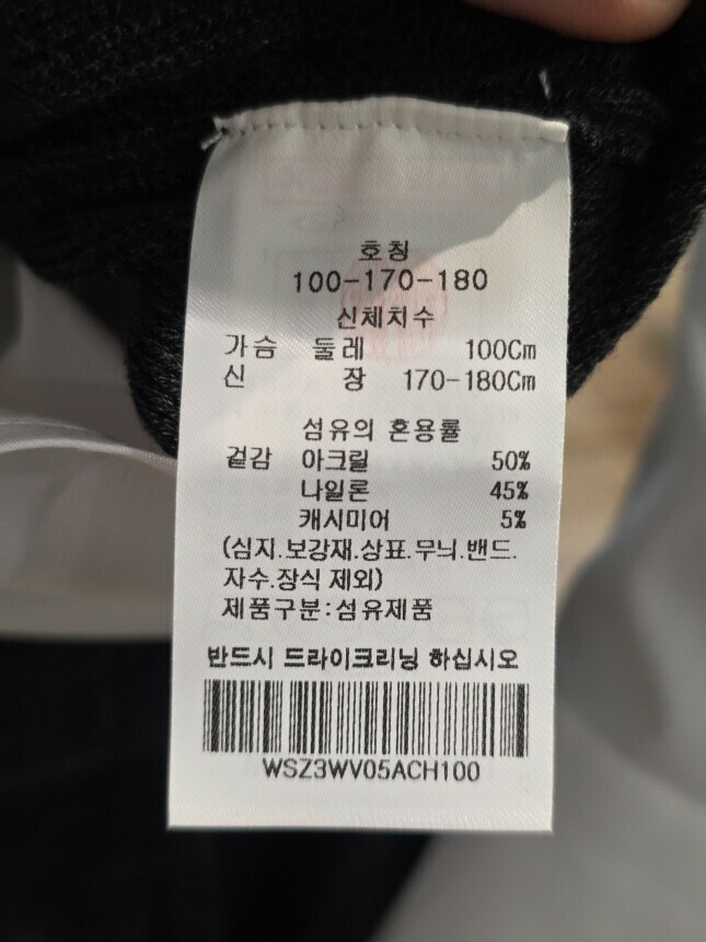 겉감 : 아크릴 50% , 나일론 45% , 캐시미어 5%