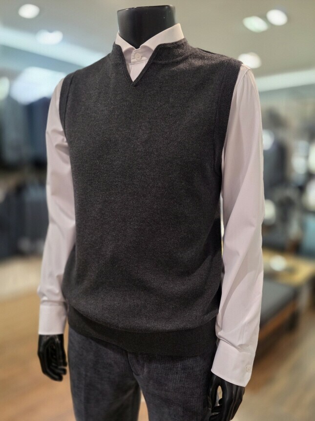 챠콜 V넥 니트 베스트