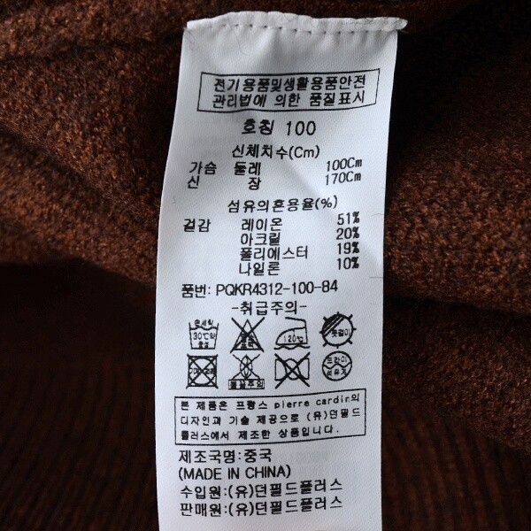 제품소재 : 레이온 51%, 아크릴 20%, 폴리에스터 19%, 나일론 10%