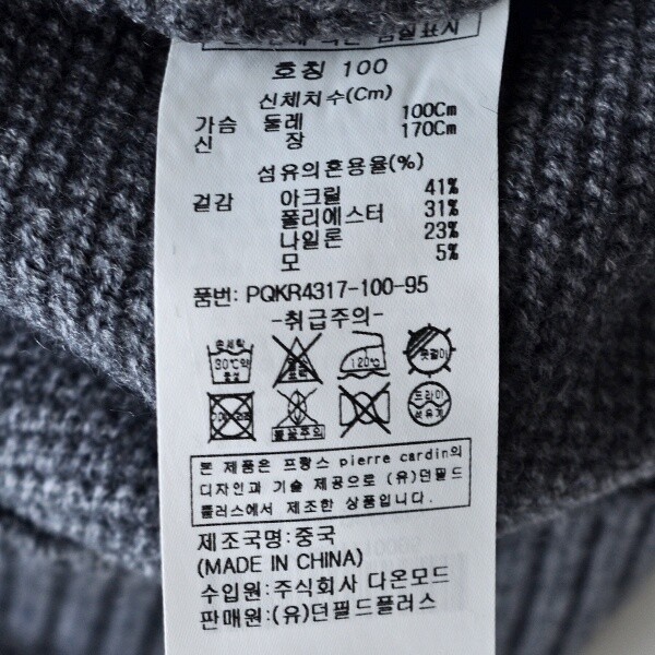 제품소재 : 아크릴 41%, 폴리에스터 31%, 나일론 23%, 모 5%