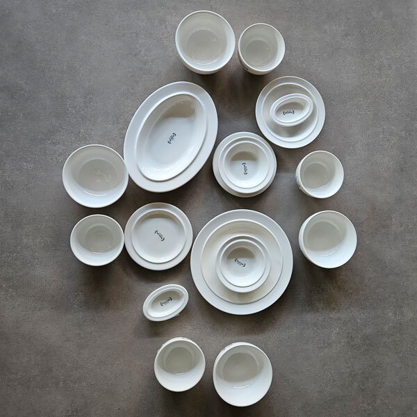구성품 : 공기 4p, 대접 4p, 접시 15cm 2p, 접시 23cm 1p, 찬기 13cm 2p, 찬기 16cm 1p, 오발볼 1p, 타원소스볼 2p